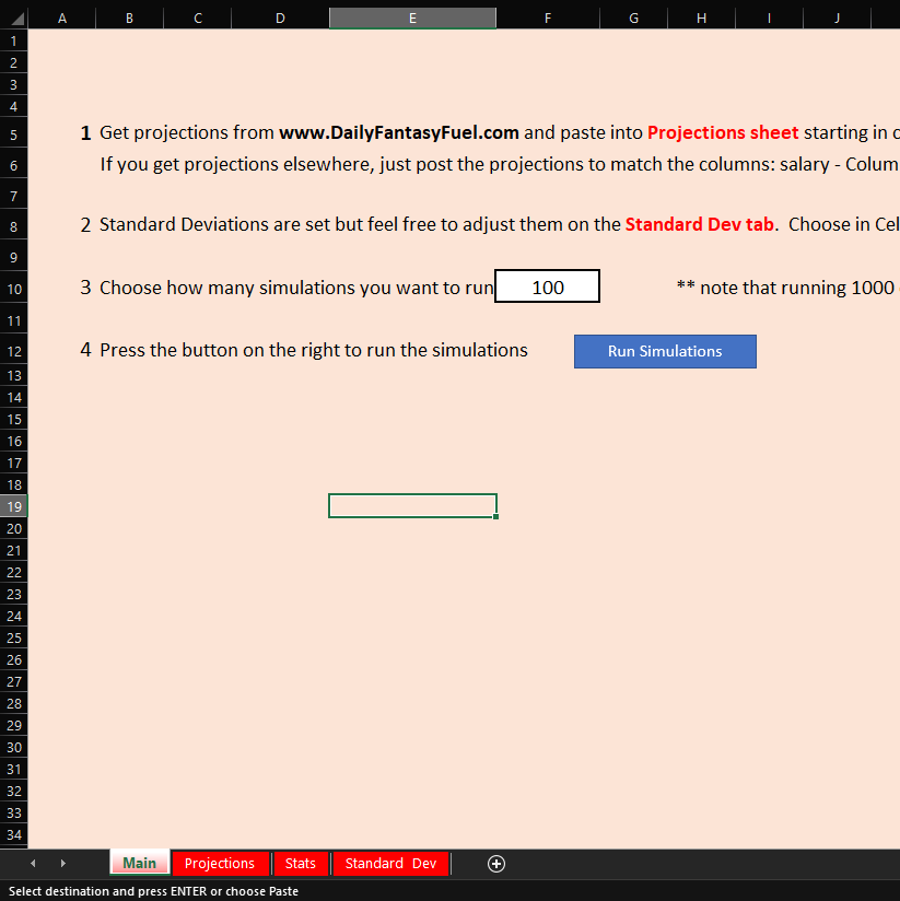 An excel workbook for daily fantasy nba simulations